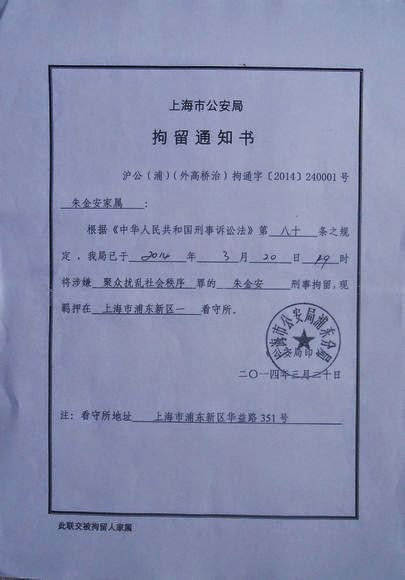 Posted: 11 Apr 2014 10:37 AM PDT (朱金安未被非法拘押前照片) (2014/4/11)权利运动发布: 今天(2014年4月11日)上海浦东新区失地农民维权代表朱金安被无罪释放,释放时朱金安由两人搀扶着走出浦东看守所的,目前老朱躺在床上不能行走。老朱说在看守所被犯人打过。浦东新区公安局局长找老朱谈话说:共产党是一党执政的,我们的政府是独裁的,你不择手段搞政府,所以政府也要不择手段的搞你! 2014年3月20日,老朱因征地养老问题为失地农民争取利益,在新区信访办谈话时被以“聚众扰乱社会秩序”刑事拘留,羁押在浦东新区看守所。当天谈话的5位代表都被抓捕,其余4位代表先后释放,朱金安被刑事拘留关押。 在关押期间,当局多次要给老朱取保候审,均被老朱拒绝。老朱说:如不是无罪释放,自己愿意坐牢到底! 朱金安电话:13916669368. 此信息由权利运动紧急热线项目编辑 |