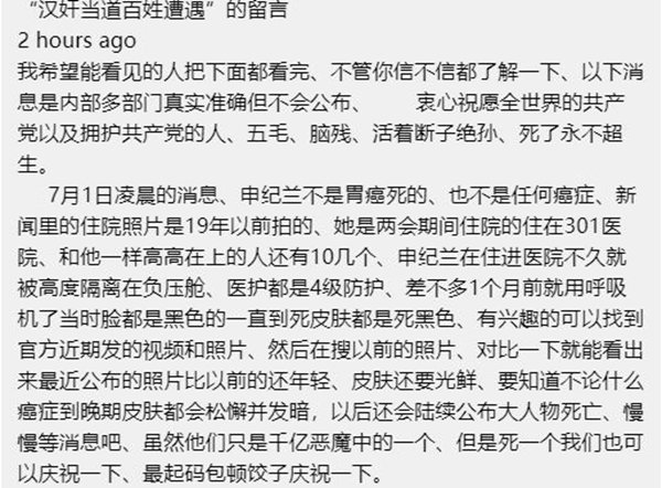 三、新冠病毒疫情中中国官方一再重申将人民利益放在第一位,将人民生命安全放在第一位。相对于疫情死亡人数,同期因病死亡人数是其百倍千倍,同期因病无钱治疗死亡人数是其十倍百倍,现在每天都有成千上万人因病无钱治疗死亡!