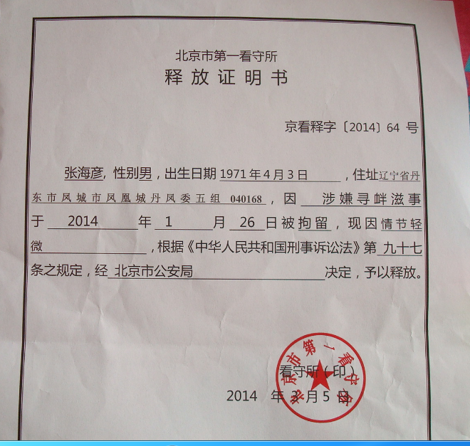Posted: 22 Mar 2014 06:25 AM PDT (2014/3/22)权利运动发布: 因为到北京市第一中级法院声援国家利益捍卫者许志永先生的辽宁凤城市访民张海彦,在经历了北京当局38天的刑事拘留加地方当局12天的精神病院囚禁后,于近日重返北京,将继续艰难的维权之路。 2014年1月22日,法学博士、国家利益捍卫者许志永先生被构陷案在腐败当局的北京一中院开庭审理,到现场围观与声援许志永、并接受国际媒体采访的蒙冤警察维权代表田兰、徐兆杰、访民盛兰福等20余人,被无事生非的北京公安先后以“非法集会”抓捕、“非法游行”报批、“寻衅滋事”释放刑拘。其中,张海彦是在1月24日通州梨园教案中被抓,因声援许志永事件被审讯。 据张海彦说,在北京第一看守所刑拘38天后,由办案的公安到看守所开释放证,结果一出门就被等候在看守所门口的辽宁省凤城市公安戴手铐押上警车,然而扔到凤城市精神病院囚禁。其他被刑拘的访友同样被地方公安劫持,根本就没有释放。 在精神病院中,身患结核病的张海彦得不到治疗,直到3月17日才获得自由。虽然被关押与囚禁了50天,获得自由的张海彦对大家的关注表示感谢。同时,感谢党的马仔一次次把自己投入精神病院,将自己培养成一个坚定的维权者。 张海彦电话:13241080412。 徐兆杰电话:18645311020。田 兰电话:18511511356。 盛兰福电话:15640951048。 此信息由权利运动公民权利项目编辑 |