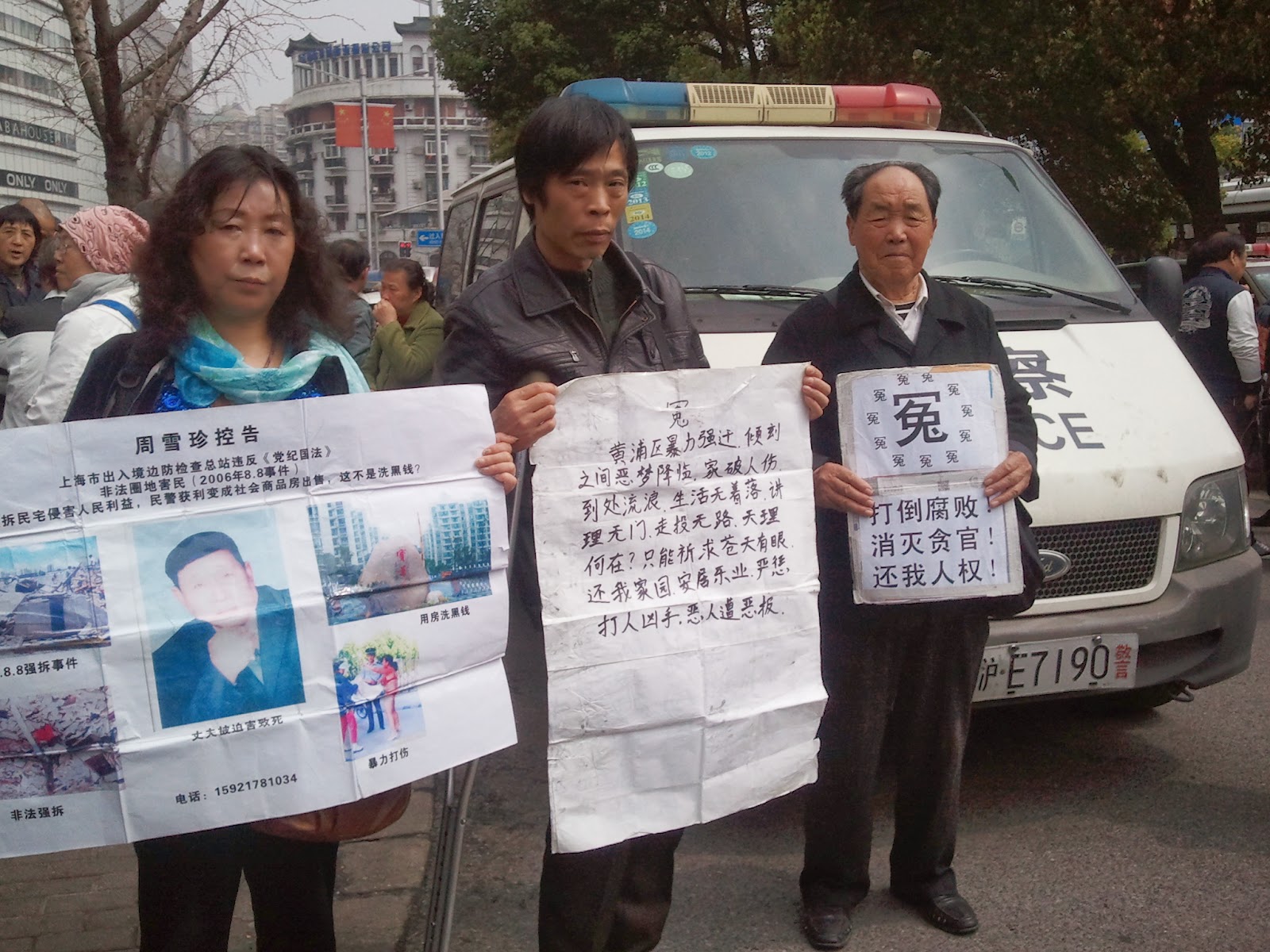 Posted: 23 Mar 2014 08:27 PM PDT 我是朱金娣,上海浦东新区陆家嘴街道的居民。我与前夫沈金宝生育一双儿女,经营着自家的饭店。2008年,地方政府打着“世博会”旗号,将我们不在规划內的地段商铺非法强拆了。从这一起天全家就失去了生活来源,无家可归。 2010年10月,勉强给了一点生活费,因非法强拆对我儿子造成了极大的伤害,2012年经受不了打击的儿子宊发得了精神分裂症。我们生活困难没钱就医,要求到街道关心一下,街道领导说帮我们解决动迁之事,我们也同意了,因全家靠商铺生计,我们要求归还商铺,街道人员就陪同我们去看了农村的商铺,那里全是农田,我从小就生在浦东,都不知道地名。 每次都是街道和我们谈,一谈就是几年,今天来了王经理,说回去向领导回报,明天再谈又是什么张经理、刘经理的,反正都要向上级领导回报,搞不情楚那位是真那位是假,反正就是不解决问题。 为此,我请求杨雄市长派专职的人来帮我们解决问题. 此信息由权利运动公民权利项目编辑 |