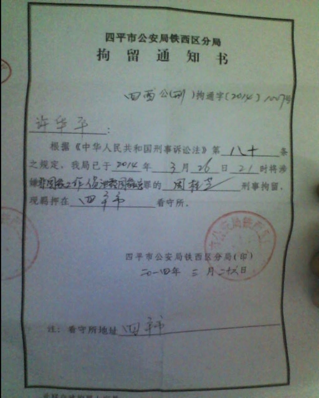 Posted: 26 Mar 2014 08:02 PM PDT 今天上午我向河北省石家庄市高新区分局督察打电话投诉高新区宋营镇派出所,主要投诉以下几件事: 一、2014年3月7号、8号从北京将我绑架回石家庄,直接带至宋营镇派 出所传唤超24小时,后来派出所和镇政府将我交给南辛庄村,村长继续非法拘禁我; 二、警号为009440的公安干警办案始终不亮明他真实的身份,拿的证件显示市公安局,但他自己说是高新区分局的,后来我证实他却是宋营镇派出所的教导员。如果他们没问题,为何会始终不敢说出自己的真实身份? 三、宋营镇派出所警号为008016的女警和李新章他俩在3月8号以办身份证为由骗取录取我的十指指纹和拍我的正面侧面照,后来要采血时,我问他俩是不是要非法拘留我?他俩说不是,还继续骗我说办身份证,我拒绝他们采血,并记他们警号,他们才说不采了还不行吗。 四、针对宋营镇派出所3月10号这次拘留我给我出具拘留证。宋营镇派出所魏所长说是市局和高新区分局下达的拘留命令,请拿出书面的文件; 五、在医院给我非法戴手铐的事; 六、宋营镇派出所现在说这事跟我没完,暂缓拘留,我要求他们给我合理解释,他们说拘留就关,说放就放,说暂缓就暂缓,也太自由了吧? 高新区分局王督察已受理。 在这里我想说几句,人民警察的职责本来是在人民生命财产受到威胁时,他们来保护人民生命财产的,可现如今公安干警成为了地方政府迫害维权百姓的主力军,为了阻止百姓维权,各地公安干警迫于地方政府的压迫站在了截坊的最前面,现在虽然劳教取消了,但拘留所成为了关押报复访民的变相劳教所。 习大大在政法会议中说过,只维稳不解决问题,就是本末倒置。习大大也提出过坚决清除政法系统的的害群之马。我想问究竟是习大大在欺骗天下还是谁在跟习大大唱反调? 谁在继续制造与激化社会矛盾?我们百姓心里都有一竿秤。 张梦颖电话:15373090675。 此信息由权利运动公民权利项目编辑 |