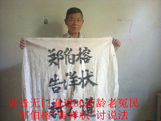 Posted: 10 Jul 2012 08:12 PM PDT (前往美国驻华使馆前的图片) (2012-7-11)权利运动发布:来自福建省福州市郑伯榕、石立琴、游志源、林球弟、李良玉、王其华、以及三明市戴湘容等7冤民,继昨日在北京街头抛撒传单鸣冤,烈士墓前拉横幅表达诉求后,今天(7月11日)早上往美国驻中国大使馆继续抛撒传单集体“告洋状”行动。 福州仓山80高龄老冤民郑伯榕含冤被坐牢10年11个月,虽无罪释放,但至今没有平反。多年以来无数次“告御状”无果,被逼“告洋状”讨公道。 福州福清冤民石立琴曾以自焚抗议福州黑恶司法,与其夫林炳兴一起历经10年执着伸冤,虽改判无罪,但官官相护,黑恶司法仍在暗中作祟,现再次“告洋状”以示抗议。 三明冤民戴湘容因劳动争议诉至法院,可福建省三级法院都是枉法判裁,使她没了活路,且无处讨说法。 福州长乐冤民林球弟李良玉夫妇房子被长乐营前镇副镇长李星在无合法拆迁手续、无补偿情况下,现场下令强拆,李良玉为抗强拆被李星所叫的歹徒强制绑押离开现场,致使其当场脑中风,房内财产也被洗劫一空。 据冤民石立琴上午10点20分打来电话告知说,诉告无门背负天大冤屈的福州已81岁高龄的老冤民郑伯榕对在有生之年平反解决冤屈已经绝望,为抗议福州黑司法,在美使馆前掏出农药就喝,幸亏被武警迅速制止。 发稿时,福州的7冤民都被警察带到辖区派出所。 石立琴电话:18950274974。 戴湘容电话:18259717876。 游志源电话:15859144631。 李良玉电话:059128993925。 此信息由权利运动人权活动者紧急热线项目编辑 |