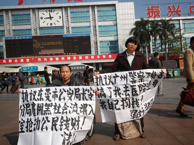 Posted: 19 Dec 2013 01:51 AM PST (2013/12/19)权利运动发布: 昨天,湖南吉首的张三元在于洪的陪同下赴怀化,探视被以“妨害公务罪”秘密判刑一年的丈夫黄光生。由于该案太过腐败、太过黑暗,交通事故后身体尚未恢复的张三元在恢复监狱拉起“丧尽天良、断子绝孙”的横幅,并向监狱看守讲述自己的遭遇,引得铁石心肠的看守的同情。 2013年6月24日,黄光生到吉首市交警大队为交通事故中受伤的、正在医院接受治疗的妻子张三元讨要医疗费,结果与交警大队的领导一言不合而遭到交警的群殴,被打个半死(手指和肋骨骨折)的黄光生被以“妨害公务罪”刑拘。7月6日,黄光生被以“取保候审”释放回家。然而,黄光生因为不服气而到市政府讨说法,结果被以“在逃”为由收监。2013年10月18日,在吉首市检察院没有依照法律规定通知家属聘请律师、法院更没有依照法律规定通知家属开庭的情况下,以“妨害公务罪”秘密对黄光生判刑一年。 在最后一天得知黄光生被秘密判刑后,家人立即向吉首市法院提交了上诉状,并聘请曾成杰的辩护律师王少光律师介入。然而,湖南省湘西土家族苗族自治州中级法院在未经公开审理的情况下,再次秘密作出的(2013)州刑一终字第121号“驳回上诉、维持原判”的终审裁定。并在裁定书中信口雌黄地称:黄光生有再“犯罪”的危险……经对湘西自治州人民医院6月24日的黄光生CT检查调查,结果没有发现黄光生被交警打断肋骨的事实……。 连程序都没有的司法显然具有了流氓化的特征,也难怪张三元痛骂这些党的流氓:“丧尽天良、断子绝孙”…… 此信息由权利运动公民权利项目编辑 |