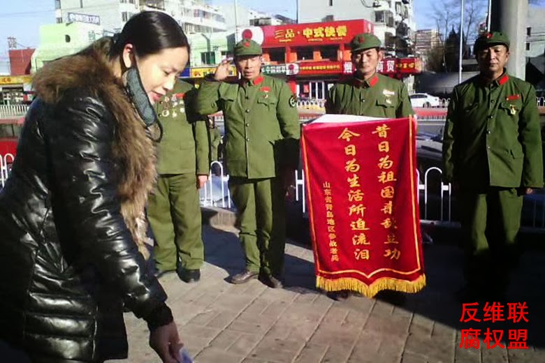 Posted: 08 Jan 2014 08:01 PM PST 今天是腊月初八,北京入冬以来是最冷的一天。青岛越战老兵这次来京已八天了。他们上午去中南海,下午在北京街头乞讨。在这寒冷的天气里,青岛越战老兵为了讨到一口饱饭,迎着刺骨的寒风,展示他们的军威。路过的百姓,看到这难以想象的场面纷纷为他们捐款。维权人士赵春红向青岛越战老兵捐款,并和青岛越战老兵握手交谈。青岛越战老兵向捐款者行军礼感谢! 有位北京大妈对此解表示质疑,拨了110报警电话,来了很多警察。那位报警大妈向警察说“这成了什么事吗?这事情国家不可能不管,让他们在北京街头乞讨真丢人,影响太坏了。肯定是假的,你们赶快把他们弄走。”大多数警察在观看,只有一名接警人员上前询问。让青岛越战老兵出示证件。围观的百姓更多了。有爱心的人,急忙拨开人群,在警察的空隙穿过捐款。那位北京大妈看到此场面,觉得自己把话说过了头。她又向其他围观的人说“这些青岛越战老兵真的太不容易。他们地方政府也太缺德了!当官的太腐败了!抓两个贪官退赃,把钱给他们事情不就解决了。” 最后警察把青岛越战老兵带到派出所。希望政府尽快解决青岛越战老兵的实际问题。 2014年1月8日 青岛越战老兵在北京乞讨维权现已第八天了。 参与人有:张云生、张克来、纪泽礼、张敬玉、井世友。 孙兴安电话:0532-66627598 刘德俊电话:15954233234 陈凤浩电话:13220877111 反腐维权联盟马波整理 |