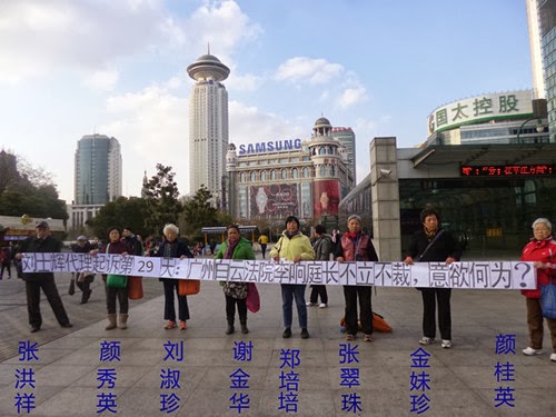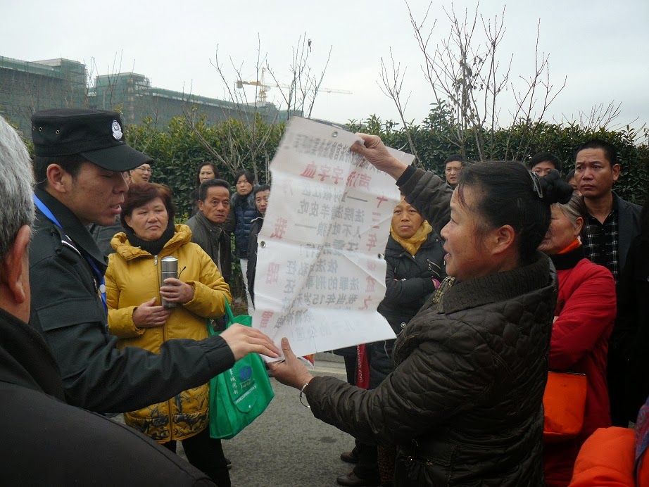 Posted: 05 Jan 2014 05:00 AM PST 2014年元月3日上午,上海维权者王志华、吴如云、陶永芳、俞雅琴、潘金花、周锦南、周海琴、张雪英、张笑琴、张亚娟、盛海琴、顾爱琴、黄粉华、徐凤芳、顾永红、周翠华、丁勤仙、朱引芹、丁莲芬、徐丽英、乔纪花、陈启勇、李惠芳、毛恒凤、周敏文、韦开珍、朱金娣、崔福芳、范桂娟等50人到第一中级法院,打“公民出国权受法律保护,陈建芳出国权不容剥夺!”横幅,抗议当局践踏人权的行为。