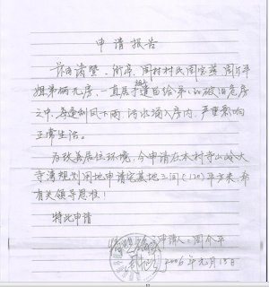 Posted: 03 Jan 2014 04:57 PM PST (残疾人不配合党的婊子工程就拆你没商量) (残疾人申请了8年的建房报告至今不能落实) 我是浙江省诸暨市街亭镇周村村民周介平,今年54岁。我是一名二级肢体残疾人,自幼双腿残疾,不能正常行走,生活不能自理,日常生活需要弟弟周建龙照顾。我是无房户,现孤身一人住在已经无人居住的一座破旧的四合院内的基中一间(属于危房),环境相当恶劣,一旦刮风下雨,污水就会从阴沟流入室内,如遇狂风暴雨,屋子随时有倒塌的危险。此房子产权属于我弟弟,原来由我弟弟一家四口与我一起居住。2000年镇村鼓励农民发展家庭企业,我弟弟也获得准许在村边与其他村民一起搭建了简易织机房。因工作忙,也随儿女的长大,一家四口无法再跟我一起居住了,只好搬到织机房内居住。但我的日常生活起居还是由他们每天照顾。 我弟弟1995年从村规划购得120平方米宅基地,1998年批准可以建房,后因公路建设被征用,一直没有重新落实。经过几番周折,历经坎坷,今年终于可以建房了。建房之处离我现居地有三里多路,以后搬入新房居住后必将无法对我很好的照顾,那我的生活就没有了保障。而且我年纪增大,已是疾病缠身,正是需要亲人关心照顾的时候。经反复考虑,我向弟弟提出,在他的新房子边上为我搭建一间平房。我弟媳当场反对,一则政策不允许怕惹麻烦,二是会影响她家房子的美观,要我等自己的房子批下来再造。我说:你们还看不清形势吗,现在的干部都只顾自己的利益,你们是公路拆迁户都等了十多年,还是靠托关系求人才批下来的,我一个残疾人就是等到死也不会批下来的。经我再三恳求和我弟弟的多次劝说,才勉强同意。并由我兄弟姐妹凑钱搭建20平方米平房,现房子结构已经完成,即将开始装修。 2006年我跟姐姐一起居住时曾向村里递交申请宅基地的报告,当时村二委领导还是相当人性化,考虑到我的实际情况,经村委开会讨论决定同意批给我宅基地,在我的报告上签字盖章(复印件附后),,并跟我弟弟的宅基地安排在一起。后来换届选举,原来的领导未能连任,我的宅基地申请也不知道卡在哪里了,一直没有批下来。新一届干部为了谋取私利,宅基地指标都给了肯花大钱或有权势的村民。而且综观全镇,哪个村的干部个人住宅不是花园亭台,圈地如庄园,哪里还会管一个无钱无势的残疾人。对此我也没有异议,社会主义市场经济体制就是人不为已天诛地灭,千辛万苦加上千万“投资”,竞选个村干部目的就是图个回报。但也不能把一个居无住所的残疾人的住宅指标也残酷的霸占了吧,天理何在呀。 镇里知道我搭建平房后,通知我弟弟说要拆除。我在弟弟的帮助下找到了镇长、书记,说明房子是我的,反映了我的实际情况,请求政府给予特殊照顾。反正我以前已经上报宅基地的申请,现在把我这违建的20平方米的面积批给我不就行了。镇长、书记看到了我的实际困难,决定向上级组织反映汇报,基本同意不拆。我千恩万谢后满心欢喜而归,对镇政府能法外施恩照顾弱者感到由衷的感激。 过了一段时间,镇里来人说为了特别照顾低保困难户,要对我现在居住的危房进行装修,并拍了很多照片,并要我弟弟把房子的土地证交给他们。我对他们说:房子是我弟弟的,我没有权利作主,而且这是个危房,光外表修修不能解决根本问题,我那边已经搭了一间平房,没有必要让政府再花这笔钱。 2013年11月13日,镇里再次动员我装修危房。我说我的房子已经造在那边,只要你们不去拆就行了,这边的房子真的没有必要装修,即使装修好了我一个人也无法生活。镇政府的人对我说:拆不拆你的房子我们没有权力作决定,但你现在的住房是一定要修的,我们已经上报了。 第二天,镇城建的五六个人再次找到了我和弟弟,问我们到底让不让修房子。我弟弟说:我的房子不需要政府来修,除非你们保证不拆我哥哥的新房子,我就让你们修。为首的一个叫孙华的大声说:哼,你以为你是什么东西,竟敢跟我们谈条件,我实话告诉你,本来那间房子还可以保留一段时间,既然你这么不识抬举,明天就去拆,还有你的织机房全部拆掉,不给你点厉害看看我不是人……。言语是相当的恶劣,根本不象是一个人的样子,更不用说政府公务员了。 2013年11月15日下午,镇城建带着大队人马开着挖掘机首先来到我弟弟的织机房,土管员何刚强问我弟弟到底修不修房子,我弟弟说不需要修,他们就抓掉了织机房边的厨房,看到织机还在,就说尽快处理掉里面的东西,我们过几天再来。然后奔赴我的新屋处,把我的平房给拆了。现场看到的群众对镇城建的恶劣行径无不感到愤慨,纷纷议论说:这间房确实是兄弟姐妹出钱为周介平造的,拍拍你们的良心说,如果你们的兄弟象周介平这样残疾的,你们会愿意留在身边照顾他吗?这种残疾人的房子你们也下得了手,真是太没人性了……。 许多一起前来执法的人员也表示了同情和无奈。这次是由于我们不让街亭镇政府强势帮困扶残丢了面子,恼怒之下强拆了我弟兄的爱心扶残房。依据《诸暨市人民政府关于加强残疾人扶助工作的意见》诸政发〔2007〕93号文件第二十一条,农村特困残疾人无住房或居住危房的,纳入残疾人“安居工程”,通过新建、改建、修缮加以解决。本来应该由政府帮我建造的,现在我兄弟姐妹为政府分忧,出钱出力帮我解决住房问题,为什么一定要暴力拆除呢? 我有三点诉