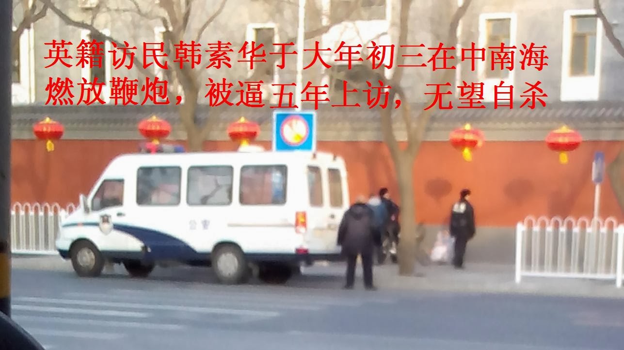 Posted: 02 Feb 2014 06:30 AM PST (2014/2/2)权利运动发布: 今天下午16点15分左右,英籍华人韩素华在吞服安眠药后,到习近平、李克强盘踞的中南海红墙下,放鞭炮鸣冤。惊慌失措的维稳警察到场时,韩素华已经瘫倒在地,被紧急往送医院,目前情况不明。 韩素华之所以用自杀的方式鸣冤,是因为上千万资产遭民政局、法院合伙侵吞,上访5年没有任何进展,且其身份证件被中共郑州当局扣押而离不开这个充满腐败与罪恶党国的无奈之举。 韩素华电话:13466797739。 此信息由权利运动紧急热线项目编辑 |