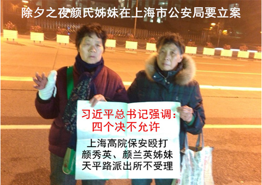 Posted: 31 Jan 2014 05:59 AM PST (2014/1/31)权利运动发布: 2014年1月30日,是中国传统蛇年的最后一天(年三十晚),是家家忙着团圆的日子,深受公安滥用职权之害的上海徐汇区访民颜兰英、颜秀英老姐妹、以及黄浦区访民高月清决定除夕夜到上海市公安局拜年、展冤。 上海“颜氏家属五口人,经徐汇法院枉判,一夜间全部坐牢”的故事已经家喻户晓。204年1月27日,颜兰英、颜秀英又被叫去上海高院谈话,结果发出要约的高法资深领导“徐洪祥”回避谈话,却出现几十号异地保安阻拦颜秀英,并当场将颜秀英殴打致伤,经上海中山医院紧急诊断为“右侧第一掌骨远端骨裂可能大,第一掌指关节半错位”,经过多次报警无果,徐汇区公安分局天平警署至今拒绝开验伤单,十指连心的大拇指不及时治疗就废了......其后果不言而喻! 黄浦区的高月清女士系64号地块居民,2008年其合法居住廿几年的住房(居面28平米),被黄浦区淞南房产、中恒集团无资质无程序串通黄浦区法院,纠集数百警力和闲杂人员,假借世博之名而偷拆,屋主眼睛被打致眼睛二级残疾,全部财物被搬走,至今6年分文未得,当年的拆迁公司淞南房产成了建房单位,64号地块上建造的商品房卖出了天价! 2010年,高月清赴京拜毛主席,因为是访民,被上海黄浦区公安分局小东门警署“洪涛”做假材料非法拘留,虽到处投诉,但至今未有说法。 颜兰英、颜秀英、高月清在上海市公安局拜年到大年初一,最后没有任何答复,只是由辖区警察接回家而已。 颜秀英电话:18916134088。 此信息由权利运动公民权利项目编辑高月清电话:18930840443。 |