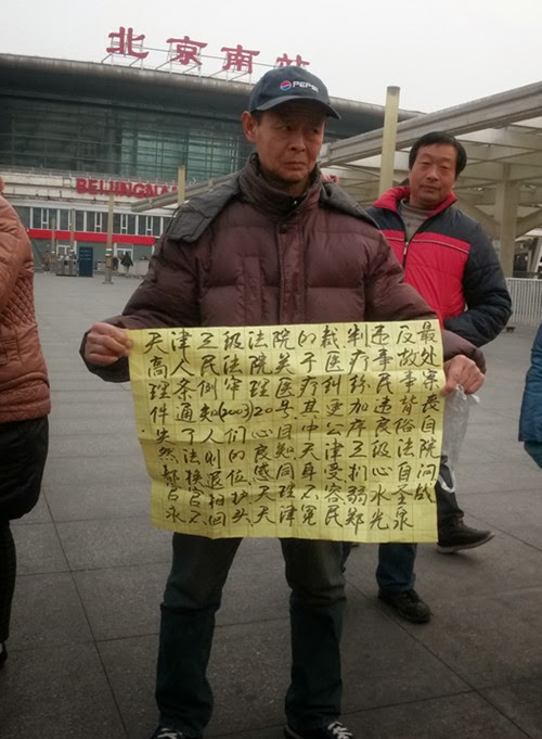 Posted: 04 Feb 2014 02:50 AM PST 今天上午,广东东莞冤民冉崇碧到北京南站举牌,控告北京市公安局局长傅政华、以及其领导下的长阳派出所警察,在春节前(其中一个警号为064954)的半夜三更闯进其的住所,将其和未成年女儿二人抓到长阳派出所非法拘禁。 只要实行的是专制制度,无论姓资姓社,还是真资假社或假资真社,其政治属性都是朝廷,哪怕它挂着西方马列洋鬼子头,譬如当朝。当然,是朝廷就有红人与阶级斗争下的倒霉鬼,与日薄西山的不厚相比,已经升任公安部副部长、且保留北京市公安局长傅振华就算是当朝最炙手可热的红人之一。 冉崇碧,因为女儿在5岁岁遭到强奸后早遭司法不公而上访维权,上访申诉5年过去了,冤案没解决,却屡遭朝廷强力维稳的打击报复。 冉崇碧电话:13240155083。 此信息由权利运动公民权利项目编辑 |
