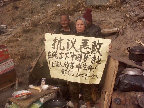 Posted: 05 Feb 2014 03:04 AM PST (2014/2/5)权利运动发布: 在北京南站的访民生活示范区,就是社会主义和谐社会制度下最好的人权印记!已在北京上访30余年的湖北省武汉市江岸区访民黄猷凡在马年春节期间,与深受专制制度之害的访友一起,用一张张真实的生活图片揭露谎言下的“中国梦”! 已在北京上访30年的武汉冤民黄猷凡说:为了要回被政府抢去的房产(由父亲在民国创办的贵记糕面店),母亲肖玉珍在30多年讨房中被无数次关在精神病院,最后在自己被侵占的房屋中以上吊结束大半生的痛苦;2008年我踏着母亲的足迹继续,结果把我关到武汉市在北京的黑监狱……。 由于党国的信访都是骗死人不偿命鬼地方,而党国的维护政权的截访警察又把一些老访民的身份证件抢走不还,所以象黄猷凡、以及她的访友们都不能去骗子窗口,也回不了家。这,就是她们天天在恶政下做的“中国梦”。 |