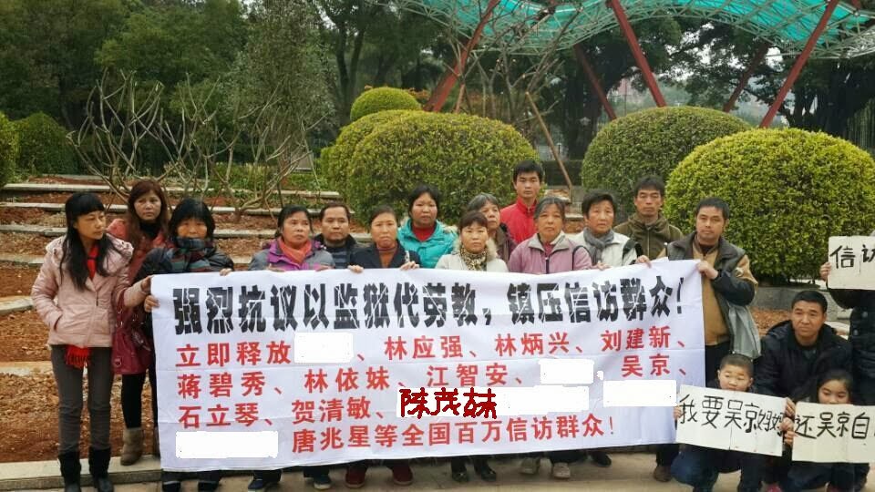 农历蛇年年三十下午,何观娇和全国各地访友到香山给习近平拜年扑空后,于晚上22点30分杀回中南海,最后由府右街送到久敬庄,再于凌晨马年的大年初一转送久敬庄关押一天。今天是马年的大年初三,何观娇于中午再到中南海拜年活动,目前被囚马家楼内的广东厅。 越南归国华侨何观娇,在广东深圳市打工期间,因长期与挥发性502胶水接触,罹患职业病。劳动仲裁机构和法院被社会主义的特色资本家收买,迫使何观娇上访,在有访民瘟神之称的王荣治下,何观娇一次次被非法拘禁于黑牢。其中,2013年被非法拘禁就超过100天。 何观娇之所以不惜二进宫执着要给反腐不为民伸冤的习大大拜年,就是希望习近平当局能够将反腐的终极目标真正落实在实践社会公平正义上,而不是仅仅为了救什么腐败如六月天放了三天三夜的豆腐渣一样的党! 何观娇电话:15810593471. 此信息由权利运动公民权利项目编辑 |