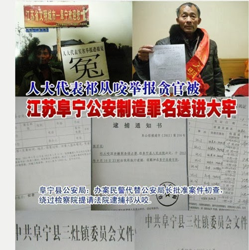 江苏阜宁“十佳爱心妈妈”汪静、阜宁县三灶镇人大代表祁从咬、以及环保卫士嵇书龙,因为“损害”了阜宁县官员的不法利益,都成为了阜宁当局的眼中钉,均被公检法制造冤假错案送进监牢予以迫害。 ![]() 今天,已经获释的“十佳爱心妈妈”汪静与阜宁县三灶镇人大代表祁从咬、张百花夫妇抵达北京,就自己各自的冤情向有关部门反映,要求中央惩治阜宁县的腐败,还自己的清白。 祁从咬曾经是江苏阜宁县三灶镇人大代表,由于他“不识时务”举报阜宁县三灶镇党委书记刘国祥和组织委员李彤操纵选举作弊等诸多腐败问题,被阜宁县公安绕过检察院伙同法院以“职务侵占”的罪名,将这位无私替村民们反腐维权的人大代表送进牢房6个月。 ![]() 被阜宁当局以“妨害作证罪”判刑一年的汪静女士,是一位在江苏省内都有一定知名度的爱心妈妈。汪静曾经收养两位被遗弃的女婴作为自己的女儿,而且还多方求治,将先天就患白内障的大养女儿治愈。阜宁当局为了迫害举报土地问题的汪静,不惜将汪静收养的未成年女儿绑架,然而诬陷汪静有虐待行为。当江苏省电视台调查后发现,村民对汪静照顾两个养女,无不交口称赞:亲生儿子也没有这么细心!遂以“少女出走之迷”为题,对腐败的阜宁当局予以曝光。 一计不成,阜宁当局又生一计,开始设计陷害汪静的儿子,先是在网上对尚未成年的汪静儿子搞虚假的通缉、抓捕、劳教等的黑材料,导致其儿子到福州武警部队服役后被退回,最后又以“妨害作证罪”对汪静判刑一年。 目前,被司法迫害最重的环保卫士嵇书龙女士还被囚禁在常州竹箦监狱,需要到今年的下半年才能获释。汪静说:性格刚强的嵇书龙在看守所与监狱中受尽了折磨与肉体的摧残。 祁从咬电话:13651573568。 汪 静电话:18252269677。 此信息由权利运动公民权利项目编辑 |