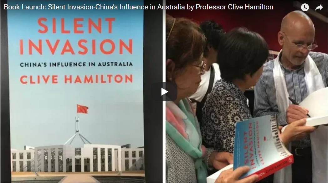 衝破阻力,照常進行(Re: Fwd: 《無聲入侵:中國對澳洲的滲透》新書發布會下週三在州議會舉行) Posted: 14 Mar 2018 06:16 PM PDT 克萊夫.哈密爾頓教授《無聲入侵:中國對澳洲的滲透》一書,衝破重重阻力,將照常於明天(3月14日星期三)在新南威爾士州州議會舉行,只是時間改為下午3:00-4:30時(2:45時開始入場),並改由另外一位州議員主持。 克萊夫.哈密爾頓教授此書出版過程遭遇到如此多的重重阻撓本身,恰恰就是說明中共對澳洲滲透嚴重程度的最好例證。 |