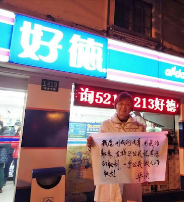 Fwd: 【维权网26126】 上海维权公民今年第22次上街举牌要求批准《公民权利和政治权利国际公约》和要求官员公开财产 Posted: 20 Dec 2017 09:08 PM PST 【维权网26126】 上海维权公民今年第22次上街举牌要求批准《公民权利和政治权利国际公约》和要求官员公开财产 收件人: weiquanwang_chrd <weiquanw...@googlegroups.com> (维权网信息中心报道)2017年12月20日,本网获悉:近日,上海维权公民在上海人民广场举行今年第22次上街举牌要求批准《公民权利和政治权利国际公约》和要求官员公开财产的抗争活动。她们不畏打压、坚持上街,举牌的内容是:"敦促全国人大立即批准《公民权利和政治权利国际公约》"、"公民要求官员公开财产"、"官员财产不公开、社会哪里有正义?"。她们能如此勇敢地坚持上街举牌要求官员公开财产,是基于对官员腐败现象的无比痛恨,是对官员廉洁、政府廉洁、政治清明以及社会公平正义的强烈呼唤。 1998年10月5日,中国政府签署了《公民权利和政治权利国际公约》。该公约保障公民各项基本人权、言论自由,以及自由选举等参与政治的权利,体现了《联合国宪章》和《世界人权宣言》有关宪政、民主、自由等普世价值观。联合国193个成员国已有168个签署、批准了该公约。中国政府多次表示将实施该公约,但如今已超过19年了仍未批准该公约。 上海维权公民敦促全国人大履行应尽的职责,立即批准《公民权利和政治权利国际公约》,使普世的公民权利和政治权利在中国得到普遍和有效的承认与遵行。 公民权利意识逐步觉醒,上海维权公民决不做袖手旁观的看客,她们选择了上街举牌的方式发出正义的声音,并不惧怕被有关部门以涉嫌"聚众扰乱公共场所秩序罪"、"寻衅滋事罪"等罪名构陷入狱,展现了坚定的信念和无畏的勇气。每次上街举牌都未发生群众举报现象,相反,得到了现场民众坚决支持和掌声鼓励。 -- |