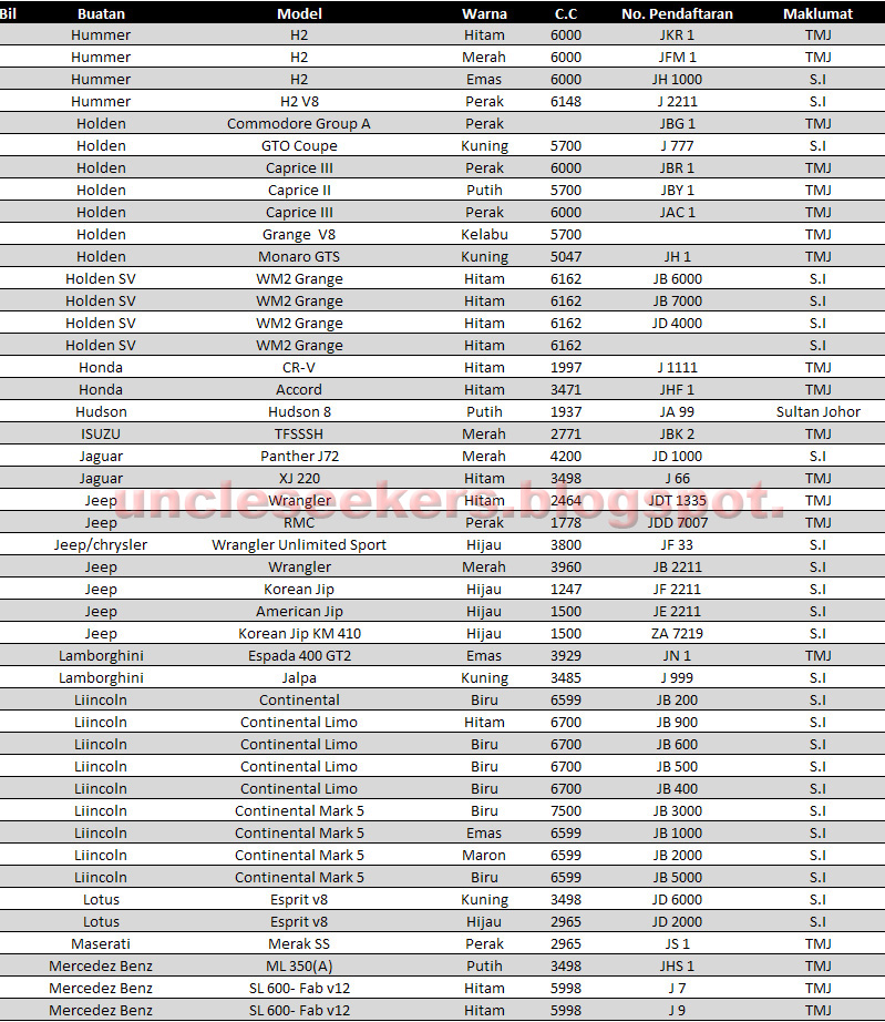Subject: Latest Collection- Cars Belonging Johor Royal- Must See