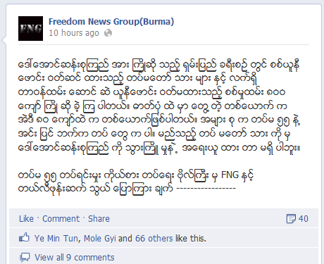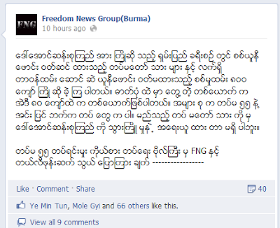 "တပ္မ ၅၅ တပ္ရင္းမွဴး"ကိုယ္စားတဲ့... ဟဟဟ။ တပ္မၾကီးတစ္ခုလံုးကို တပ္ရင္းမွဴးအဆင့္က အုပ္ခ်ဳပ္တာတဲ့ေနာ္... မွတ္ထားၾက.. အဟက္အဟက္။ လူေတြ အသည္းဘဝင္ခိုက္ေနၾကတဲ့ ျမန္မာ့စတုတၳမ႑ိဳင္ၾကီးေတြရဲ႕ "သတင္းအခ်က္အလက္ တင္ျပစုေဆာင္းေရးသားပံု ခိုင္လံုျပည့္စံု မွန္ကန္ေသခ်ာပံု"မ်ား ေျပာပါတယ္.. ဟဟ။ ငါတို႕လဲ ေဒၚညဳကို ၾကိဳခ်င္တယ္... ဘယ္လိုၾကိဳရမွာလဲ.. ဟင္ ?? လာေရာ လာရဲမွာလား... စပါယ္ရွယ္လ္ ၾကိဳမွာေနာ္... ခၽြန္ျမေနေအာင္ ေသြးထားတဲ့ ၇.၆၂ ခဲဖူးေလးနဲ႕ ၾကိဳမွာ... လြတ္လပ္ၿပီး ျမင္သာပြင့္လင္းမႈကို ၾကိဳက္ပါတယ္ဆိုတဲ့ေဒၚညဳ လံုးဝကို ပြင့္လင္းသြားေစရမယ္... လံုးဝကို ပြင့့္သြားေစရမယ္၊ ပြင့္ထြက္သြားေစရမယ္.. နားထင္ဟိုဘက္နဲ႕ဒီဘက္ ထုတ္ခ်င္းေပါက္ ေျပာပါတယ္... ဟဟဟ... မၾကာေတာ့ပါဘူးမညဳ.. လႈပ္ရွားေနပါၿပီ... ထမင္းဝေအာင္သာ စားထားပါ။