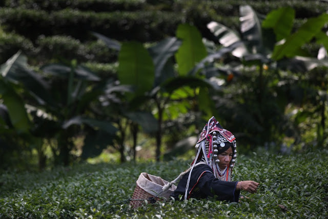 كل ستة اسابيع يتم حصد محصول الشاي في المزارع المنتشرة في تايلاند , لهذا الحصاد عاداته وتقاليده وملابسه الخاصة