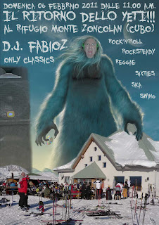| Maggiori informazioni | L'abominevole si recherà sulle nevi dello Zoncolan per un pre/post dinner dj set a base di ROCKSTEADY | REGGAE | SKA | ROCK AND ROLL | SWING AND MUCH MORE... !!! dalle 11 del mattino fino a pomeriggio balli frizzi e lazzi ... devo aggiungere altro?!?! non credo tutti sulla neve!!! |