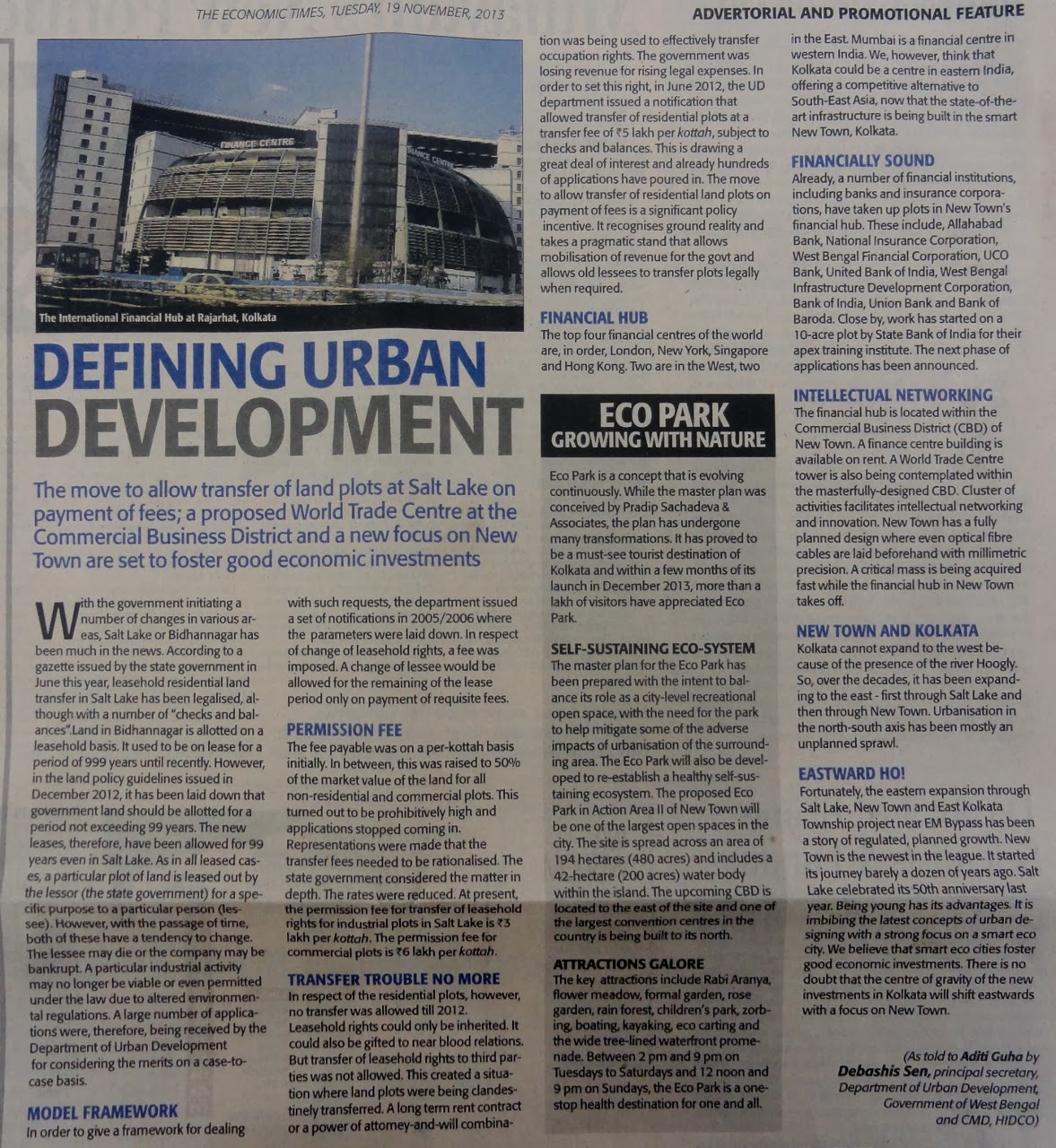 The Gazette Notification was published recently and can be seen at http://www.wburbandev.gov.in/circulars/3865-ud_o_m_hid_41-3-2011.pdf . In CBD (Central Business District) if a plot is located within 250 metres of the Metro Railway Line, a builder can make a house with a Floor Area Ratio of 6 on payment of prescribed fees. This FAR is the highest in the state. This is in pursuance of our perception that cities need to densified by creating virtual land through taller buildings