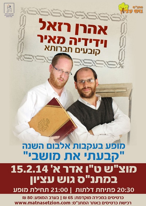 מוצ"ש ח' אדר א' 8.2.14 בשעה 20:30 באולם המתנ"ס