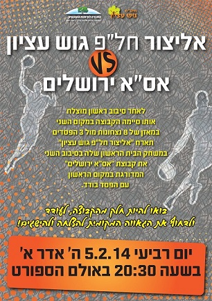 SAVE THE DATE! אליפות גוש עציון תתקיים ביום שישי ד' ניסן 4.4.14