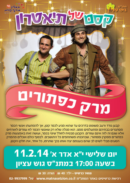 כרטיסים: ילד 40 ש"ח, הורה 30 ש"ח