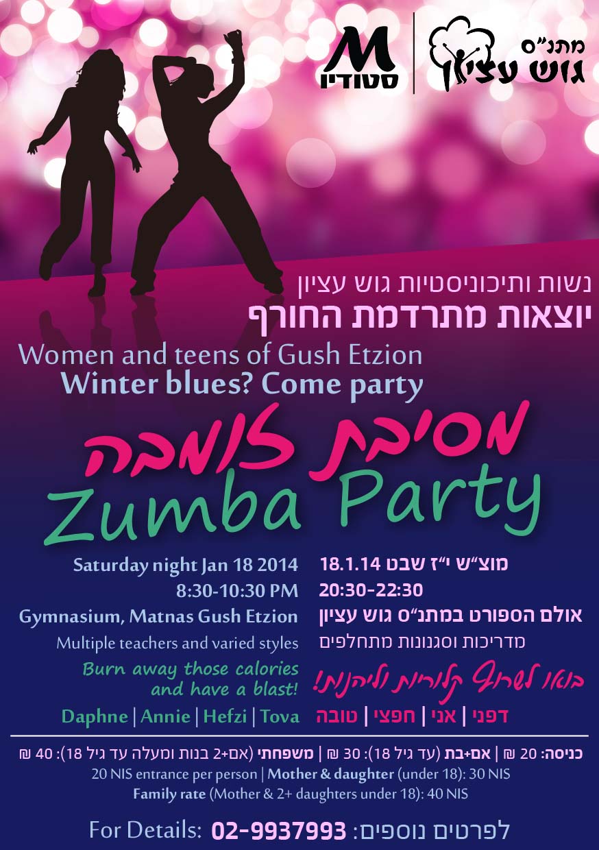 מוצ"ש י"ז שבט 18.1.14 20:30-22:30 באולם הספורט