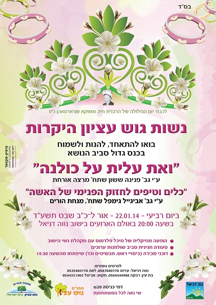 מוצאי שבת כ"ד שבט 25.1.14 בשעה 20:30 באולם המתנ"ס