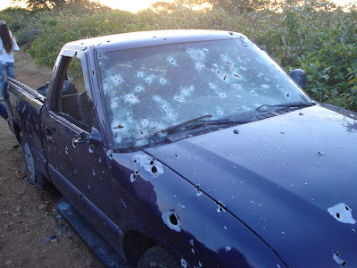 Com tanto furo nem a roupa serviu para doação A PF/RN contabilizou apenas 24 cartuchos deflagradas, de calibres diversos. Somente na lataria do veículo S10 utilizado pelo bando foram contabilizados mais de 100 disparos. Três dos assaltantes iam na cabine dianteira e os cinco restantes na carroceria. Segundo relatos de parentes, a maior parte dos corpos ficou completamente irreconhecível. Picape ficou só a peneira após o confronto Era para ser apenas uma sondagem, no intuito de verificar se quatro suspeitos de assaltos a motociclistas estavam em casa, no conjunto Santarém, zona Norte de Natal. No entanto, quando um agente de Polícia Civil do 12º DP se aproximou dos "malas", todos correram para dentro da residência e começaram a efetuar disparos.