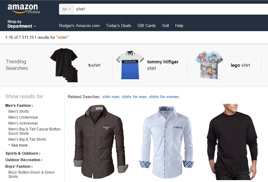 - from the DuckDuckGo main page, enter "!Amazon Shirts" (without the "s)