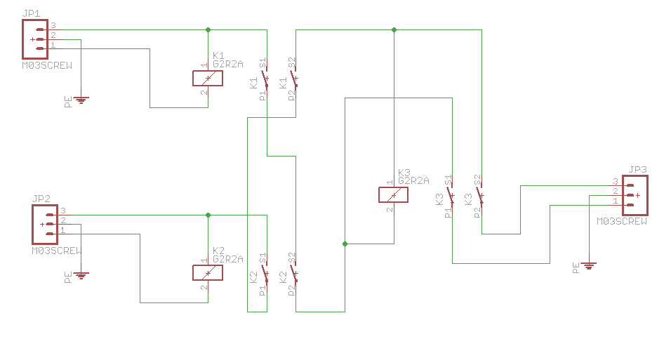 Not shown in the schematic are two neon indicator lights across the two 120v relay coils and one across the two outlet hot lines. When all 3 are lit, you're good to go.