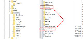 service tomcat stopen &CATALINA_HOME/webapps borrar el events.war y su carpeta de deploy.