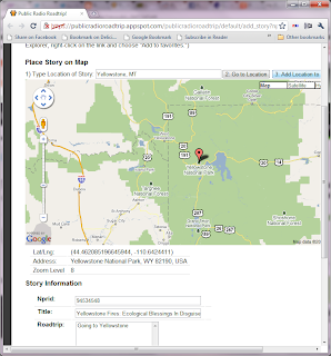 One of the non-technical reasons why this app hasn't yet taken shape is that even though people have an instant, emotional reaction to how a Public Radio Roadtrip would work, it's likely that different people might have several different ideas for how this would actually work in practice. As a matter of fact, I'm not even sure myself precisely how a roadtrip would actually function. A lot of my questions about the Public Radio Roadtrip app actually are now starting to get a bit less technical and are starting to point in the direction of wanting to understand how the app should work from the user end of things... Questions like, how would a roadtrip work? Would it be a podcast? Would it be a route on a map... if a user was driving through Yellowstone National Park, for instance, how would they know that a particular public radio story was relevant to the breathtaking vista that they were taking in; would there be a printed guide to accompany a set of mp3 files?