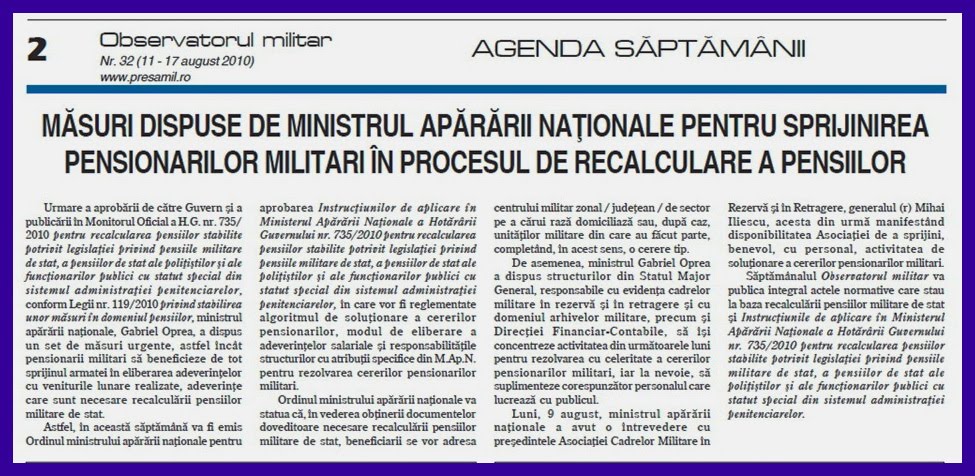 si despre noi, pensionarii fosti militari,