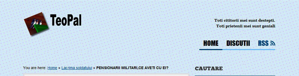 Cu tot respectul pentru conducerea Sindicatului, dar de data aceasta, in opinia mea, Comunicatul este jenant, pe alocuri penibil, parca ar veni din partea unui ONG (asa cum este considerat SCMD de catre unii). In conditiile actuale, 25 octombrie mai inseamna ziua armatei doar pentru … istorici. Nici macar pentru militarii activi nu prea mai inseamna mare lucru. Care armata? Asta a lui Basescu, Boc si Oprea? Domnul col.dr. Dogaru nu a inteles probabil ca degeaba asteapta dinsul anul acesta pina la recalculare rezultatele proceselor intentate autoritatilor, pentru ca primul termen il are in ... octombrie si cine stie ce va fi si atunci... Conducerea SCMD ar trebui sa stie si sa nu uite ca pina pe la 25 octombrie (data avansata de catre dl col dr Dogaru) pensionarii militari trebuie sa aiba deja trimise la Directia Financiar Contabila documentele necesare recalcularii daca nu vor sa aiba surprize. Ii va ajuta SCMD pe pensionarii militari sa alerge din garnizoana in garnizoana sa faca rost de actele necesare pentru recalculare? Chiar nu realizati ca aceasta Hotarire de Guvern privind Recalcularea va declansa si adinci coruptia in structurile sistemului de aparare? Sa vedeti ce spagi vor trebui sa fie date la unitati/mari unitati nu numai pentru a primi documentele necesare, dar si pentru a primi o hirtie in care sa ti se spuna de unde sa iei documentele daca, din nefericire, vreuna dintre unitatile pe unde am lucrat s-a desfiintat. Apropo : stie cineva de unde luam documente pentru situatia in care unitatea s-a desfiintat? Ce spagi se dadeau la intrarea la academie, sa vedeti ce spagi vor fi ca sa obtii documentul de salarizare de pe timpul studiilor in academie. Fiindca veni vorba de academie: ar putea spune cineva daca anii de scoala militara se mai iau in calcul, daca trebuie sa solicitam ceva si de la scoala? Recunosc, nu sunt un specialist in resurse umane , salarizari, pensionari etc, de aceea intreb, poate se pricepe cineva dintre pensionari si sa ne lumineze si pe noi. Astept! Adevarul e ca m-a enervat destul de tare aceasta HG. Imi este sila, lehamite sa alerg acum prin toata tara, pe praful asta dupa toate documentele necesare, sa incep iar calvarul umilintelor pe la unitati, comandamente, directii, SMG, comisariate, unitati desfiintate etc. Astfel de raspunsuri asteptam de la Sindicat, nu raspunsuri de genul sa stam cuminti pina la 25 octombrie, cind e masa festiva la armata militara. Urmeaza micul si berea kaki! Stiu ca am deranjat pe multi cu cele scrise mai sus, dar asta e situatia: in opinia mea, Sindicatul nu trebuie sa fie ca un ONG care se lamenteaza si propune jocul de asteptare la offside, fara a observa ca deja domnul Boc ne-a trosnit cu senila peste bot! (scuzati de expresie dar cam asta e! Prost-prost, mic-mic, dar uite ca ne-a trosnit!). Va doresc sa aveti drumuri usoare in cautarea documentelor doveditoare (ce formula cinica foloseste domnul Boc!), sa gasiti si intelegere si documente, sa nu va enervati prea tare ca va creste tensiunea si nu mai aveti nevoie dumneavoastra de documente ci urmasii. Sa fiti sanatosi ca de restul au grija domnii Basescu si Boc. (Acum sa fim sinceri si sa recunoastem: Boc nu a promis niciodata ca va ajuta militarii. El ne-a facut de la inceput nesimtiti. Dar comandantul suprem a zis... etc). Cu stima Mihai Roman (nu am mai zis ltcol, ca oricum nu mai foloseste!) PS Ramin in continuare alaturi de SCMD, dar am vrut sa-mi stiti pozitia, opinia. Nu inghit orice, cu atit mai mult cu cit stiu ca in conducerea SCMD sunt oameni destepti! Trebuie insa mai multa atentie, pentru ca si noi citim cu atentie.