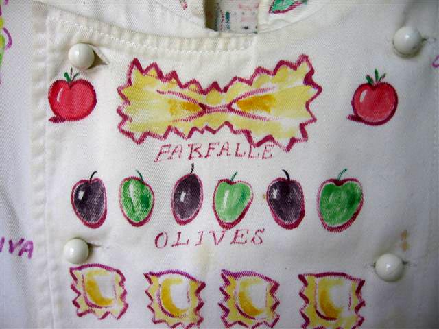 I never ever worried what to wear to a ball or any foodie events I was shooting. I was a walking sandwich board for the jackets. Mothers liked the jackets for their graduating culinary school kids. Chefs liked them for special events. the chefs were just entering the celebrity arena at that time. I threw in this back view of the "pasta jacket" of a hilltown for all you returning sojourners from Italy!