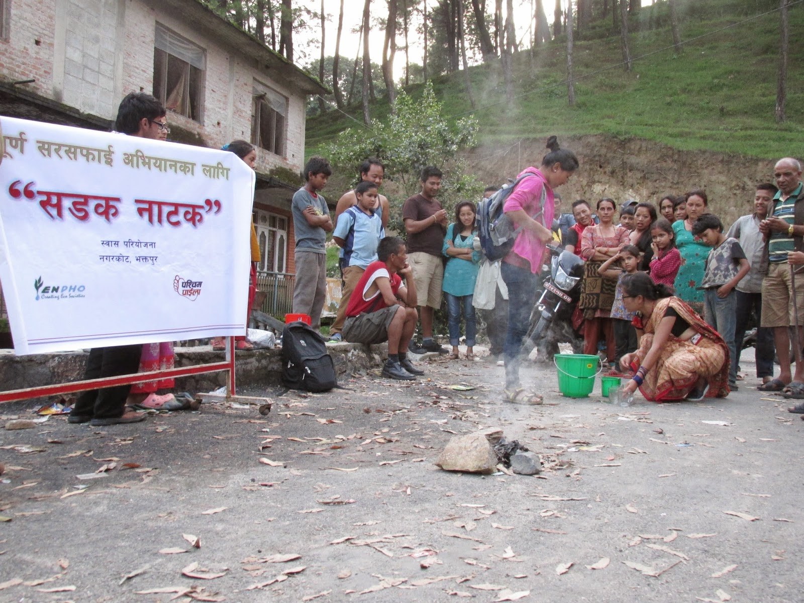 sensitizing people about five components of healthy living (safe drinking water, proper use and maintenance of toilet, personal hygiene including proper hand washing practices, indoor air pollution and solid waste management) was successfully conducted at the streets of Nagarkot VDC by the volunteers of Paschim Paaila under SWASH project Nagarkot.