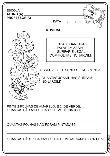 Atividade Animais de Jardim - Escrita do Nome Posted: 26 May 2011 05:55 PM PDT Com essa atividade o professor poderá trabalhar o nome da criança de forma divertida utilizando uma outra folha de ofício e sugerindo que a criança escreva seu nome em cada flor, pinte recorte e cole de modo a fazer uma trilha e depois deixe-os brincar com o caracol por sobre as flores. Seria interessante recortar e colar o caracol em um pedaço de cartolina ou EVA. Também pode ser sugerido que as crianças juntem-se em grupo e disponham suas florzinhas fazendo as trilhas pra o caracol passar apenas por cima do nome de determinado colega e chegar do outro lado. ( Eles podem identificar o nome do colega pela letra inicial) Veja Também: |