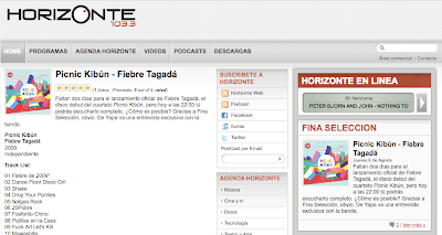 | Fiebre Tagadá se estrena hoy en Fina Selección de Radio Horizonte! No te la pierdas, hoy a las 22:00 en Radio Horizonte, un especial de 1 hora con entrevista exclusiva a la banda. De principio a fin, Fiebre Tagadá sonará para que te prepares para el lanzamiento del sábado 8 de agosto en el bar Constitución (entrada liberada). Haz clic sobre la imagen para ir al articulo de Radio Horizonte | señal online R.Horizonte Síguenos en: |