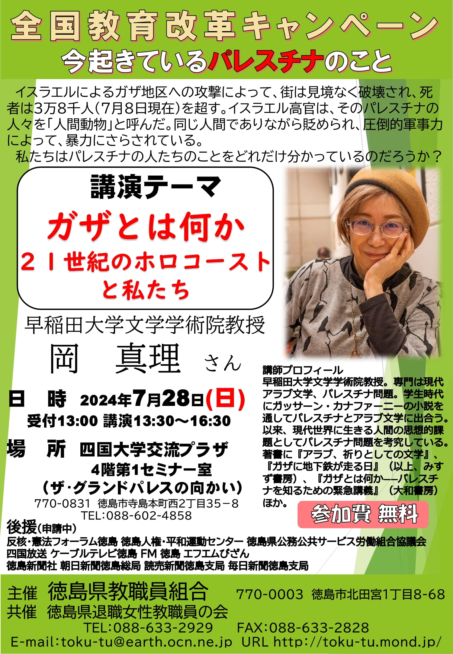 ガザのこと、パレスチナのこと(ガザでは今、何が起きているのか、その問題の根源はどこにあるのか、日本はこの問題にどのように関わっているのか、私たちの責任とは…)、この機会に、ひとりでも多くの徳島の市民のみなさまにお伝えしたいです。