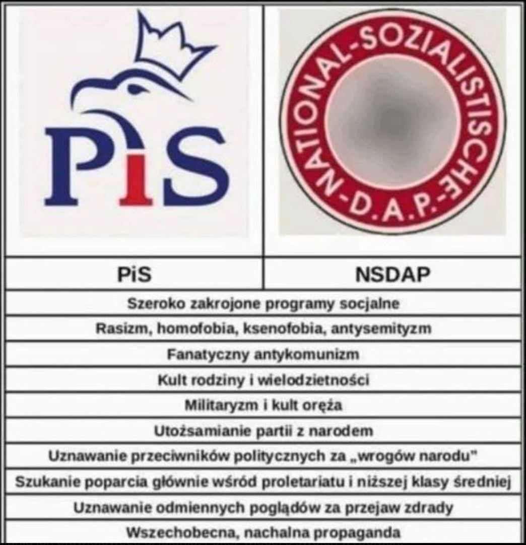 > zrównał ideologii PiS z nazizmem, jak próbował to przestawić