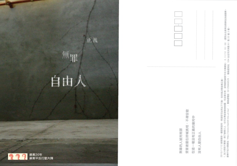 1. 即日起,寄一張實體明信片給蘇案相關當事人,或在網站上寫虛擬明信片。