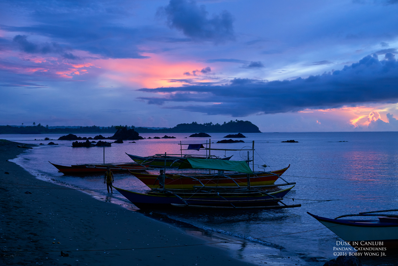 "I can see a small tributary down there. And where it meets the sea there appears to be a small fishing village beside it. You think that might be a good place to stalk dusk today?" "Oh why not?!!" That's the kind of conversation that launched a thousand ships, and today it will lead us to a place we haven't been. Again.A good 45 minutes later, we found ourselves within the sleepy town of Canlubi in Pandan Catanduanes, where we finally found a few stands of Pandan trees after which the town was named. Literally off-the-beaten-track, the folks here don't get a lot of visitors. Heck, they don't even have a corner store, neither the comforts of a modern life. Isolated. Unknown. And forgotten.In the end dusk wasn't majestic, but it didn't disappoint either. It was too cloudy for glory, but some light made it through, peppering the sky with swathes of orange lined with crimson. The highlight was making new friends there, friends we exchanged phone numbers with, and that's more than we originally expected in these parts. Enjoy.