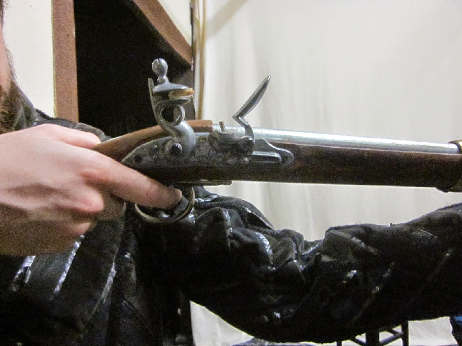 Fortunately there are people involved in this production who were able to source both. Ian Belcher, who plays Athos, is involved in LARPing (Live Action Role Play) which he described as like cross country pantomime. During a LARP participants dress up and physically act out their characters actions using props were appropriate. In this case Ian's beautiful Renaissance era muskets are very appropriate.