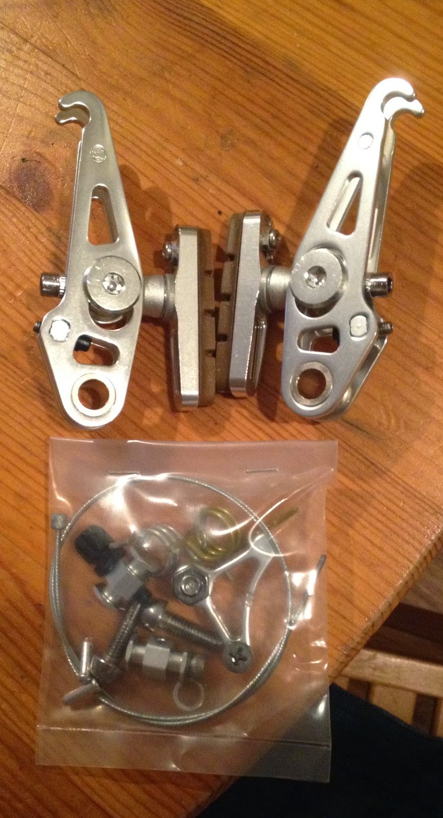 I've been struggling to find cantilever brakes strong enough to satisfy my needs. The very rainy Severna Park 200k ride demonstrated that a few hours of rain, road oil and grit can turn adequate brakes into non-stoppers very quickly. After way more research than I thought possible on the subject of cantilever brakes, I got the