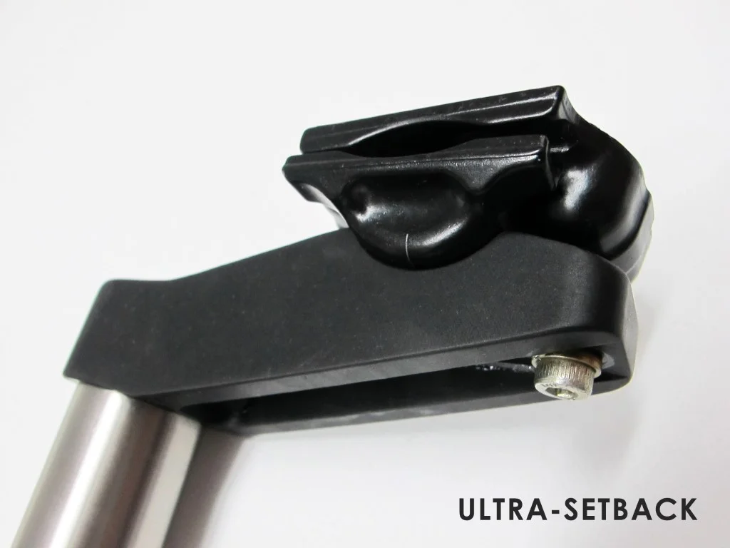 I think the stickler is the head clamp Ian, which one and by whom ? There is a titanium custom seatpost maker who does an ultra long setback with the Thomson clamp, but it's a cool $625. that's no misprint. For that investment get a custom frame built by someone else with a 71 degree seat tube angle and a 27.2 post as that gives you the flexibility to literally use any kind of 27.2 post you want,  and clamp the rails near the middle. I say this because using a long setback post is just weird in real world use. It's a band-aid for frames that don't fit the rider and/or the saddle. I have an S84 on my custom road bike that has a 72.5 STA, it's too steep to get my saddle back where I wanted it with a regular post. With the S84 my thighs are now that much more behind the seat tube. With my Revelate seat pack it took many fails to be able to velcro it around the seatpost without my thighs rubbing on it because it attached to the rails also and the saddle was now so far back. it's not so much the brushing feeling it as it the strap and velcro trashes apparel, apparel that is expensive and/or non-replaceable. Now with a saddle positioned closer to the center of the rails and the seat tube everything is grande !   Oh gosh the things they don't tell you in all those quick fix solutions......  They seem best only for those that sell them !