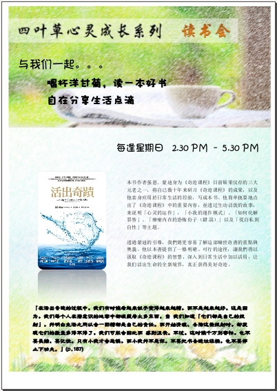 [四叶草心灵成长工作坊] 《活出奇迹》读书会