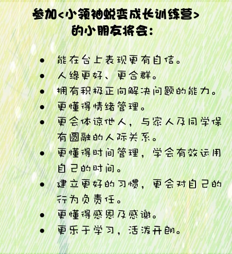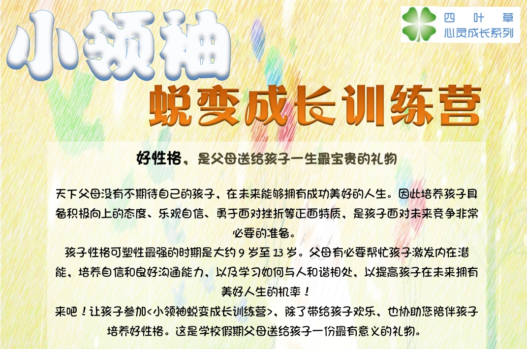 [四叶草心灵成长工作坊] 小领袖蜕变成长训练营