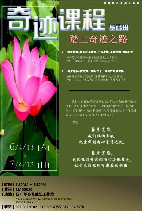 [四叶草心灵成长工作坊] 《奇迹课程》基础班