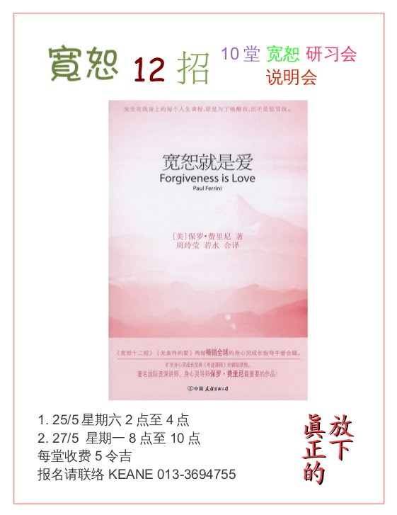 [四叶草心灵成长工作坊] 宽恕12招10堂宽心研习会说明会
